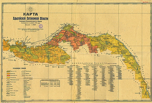 10 января 1934 года из Северо-Кавказского края был выделен Азово-Черноморский край, куда была отнесена Адыгейская АО. 28 декабря того же года на территории Азово-Черноморского края было проведено разукрупнение районов, в результате в Адыгейской АО число районов увеличилось до 5, а сельских советов с 40 до 43.