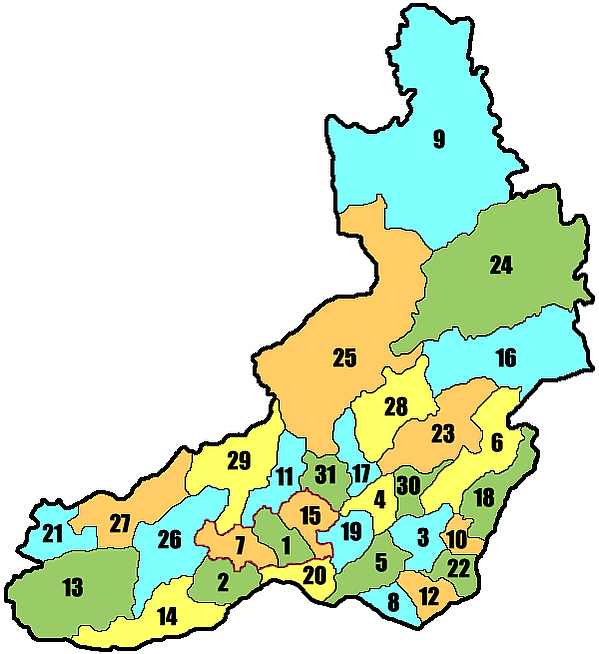 - 31 район, 3 из которых (Агинский, Дульдургинский и Могойтуйский) входят в Агинский Бурятский округ как административно-территориальную единицу с особым статусом.