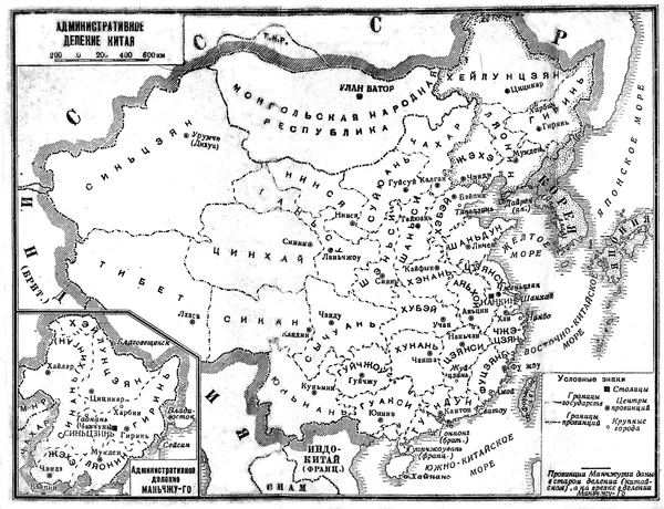 Государство Маньчжоу-го существовало в 1932—1945 годах. В административном отношении верхними единицами были провинции, города с особыми статусом (Синьцзин и Харбин) и особый район Северная Маньчжурия.