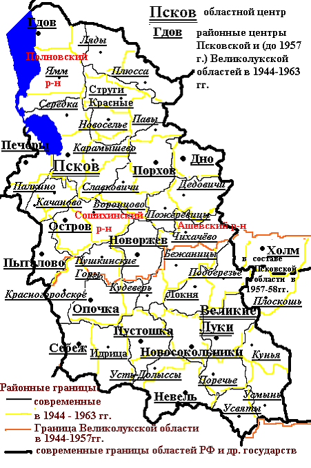 Псковская область образца 1944 — 1957 гг. включала следующие районы:
