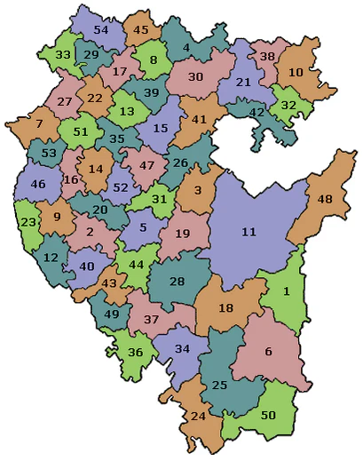 - 54 муниципальных района (им соответствуют 54 административно-территориальных района),