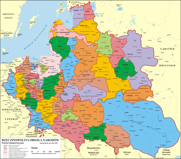 Также в состав Речи Посполитой вошла Ливония (Инфлянты), вошедшие в её состав в 1561 г. в результате распада Ливонского ордена, где деление на воеводства ввели в 1598 г.. Тогда же было создано герцогство Курляндии и Семигалии, что признало себя вассалом польского короля. А также — Княжество Севежское, Варминское княжество, Лемборкско-бытовская земля.