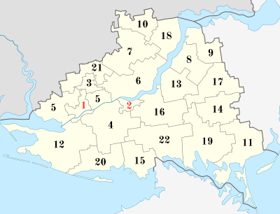 | № | Район | Население (тыс. чел.)[15] | Площадь (км²) | Административный центр |