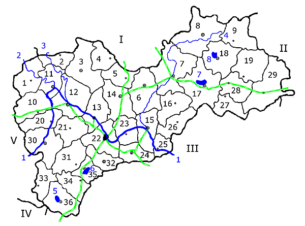 - 17 районов (Большесельский, Борисоглебский, Брейтовский, Гаврилов-Ямский, Даниловский, Любимский, Мышкинский, Некоузский, Некрасовский, Первомайский, Переславский, Пошехонский, Ростовский, Рыбинский, Тутаевский, Угличский, Ярославский).