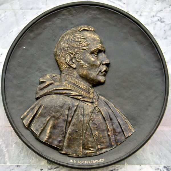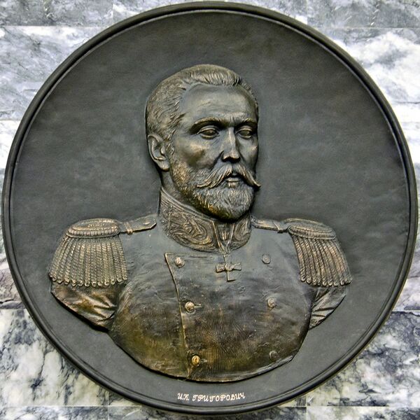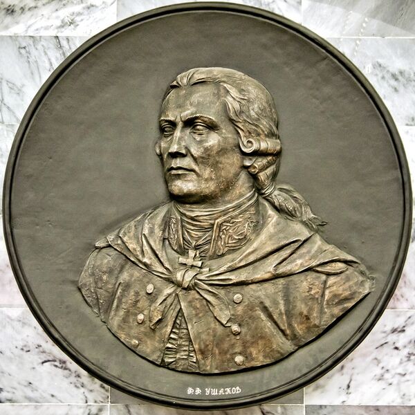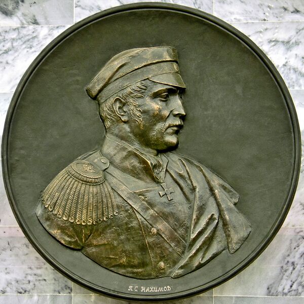 Простенки между колоннами украшены медальонами с барельефами русских адмиралов и флотоводцев: Ушакова, Нахимова, Макарова, Апраксина, Беллинсгаузена и Григоровича работы скульпторов В. Д. Свешникова и А. С. Чаркина[5].