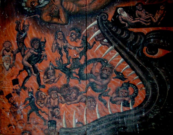 Написание адописных икон на Руси было разновидностью чёрной магии.[4] Этнографические описания сообщают: «некоторые богомазы на загрунтованной доске пишут сперва изображение дьявола, и когда это изображение высохнет, снова загрунтовывают и уже на этом втором грунте изображают угодника».[5] В результате этого, молящийся перед такой иконой обращается не к Богу, а к сатане, и молитва приобретает обратный эффект.