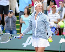 - ↑ Индиан-Уэллс 2011. Возняцки вышла в полуфинал на отказе Азаренко (2011-03-17). http://www.gotennis.ru.+Архивировано 17 февраля 2016 года.