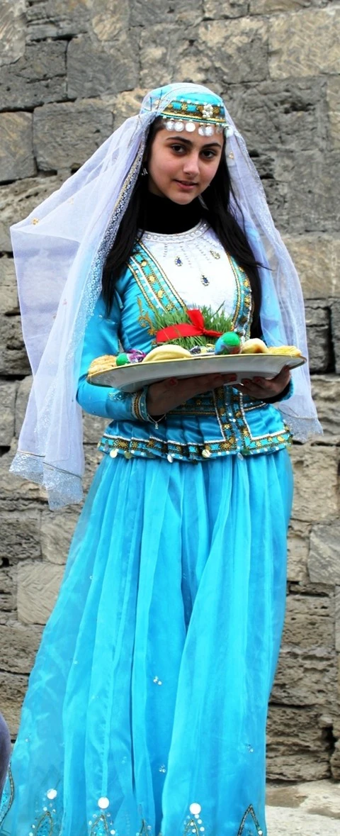 Женский национальный костюм азербайджанцев состоит из нижней и верхней одежды. Он включает в себя мешкообразное покрывало — «чадру» и лицевую занавеску — «рубенд», которые женщины надевали при выходе из дома. Верхняя одежда шилась из ярких цветных тканей, качество которых зависело от достатка семьи. В одежду входило также множество различных ювелирных украшений. Были популярны золотые и серебряные бусы, пуговицы, стилизованные под крупные зерна ячменя, низки монет, ажурные подвески, цепочки и т. п. Молодые в отличие от пожилых носили более светлую одежду с яркими цветами.