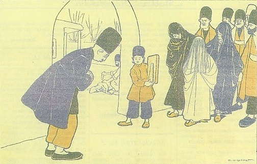 За сватовством следовал обряд обручения. После того как родители девушки (прежде всего отец) соглашаются выдать дочь замуж, жених в доме невесты угощает своих новых родственников чаем и сладостями. Процесс обручения у шахсевенов, этнографической группы азербайджанцев, в 1908 году описывался так[6]: