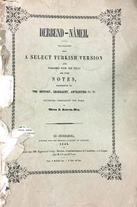 На Кавказе, наряду с другими рукописями исторической хроники «Дербенд-наме» (на персидском, арабском, кумыкском и лакском языках), имели хождение и рукописи на азербайджанском[188]. Эта хроника представляет собой компилятивный труд, основанный на извлечениях из арабских и персидских источников. «Дербент-наме» вообще является первым историческим произведением, написанным на азербайджанском языке[189]. Его русский перевод был издан в 1898 году в Тифлисе М. Алихановым-Аварским[189].