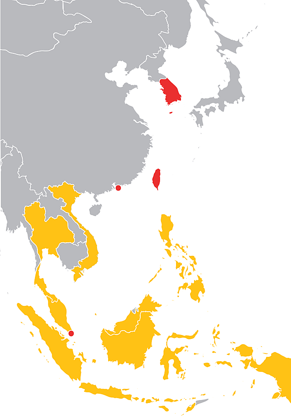 Новые индустриальные страны первой волны называют просто «четыре азиатских тигра» или «азиатские тигры первой волны». В число азиатских тигров второй волны входят новейшие индустриальные страны последующих волн индустриализации: Малайзия и Таиланд, Индонезия, а также Филиппины[12][13]. Кроме Вьетнама в число новых азиатских тигров также иногда включают входящий в «группу одиннадцати» Бангладеш[14].