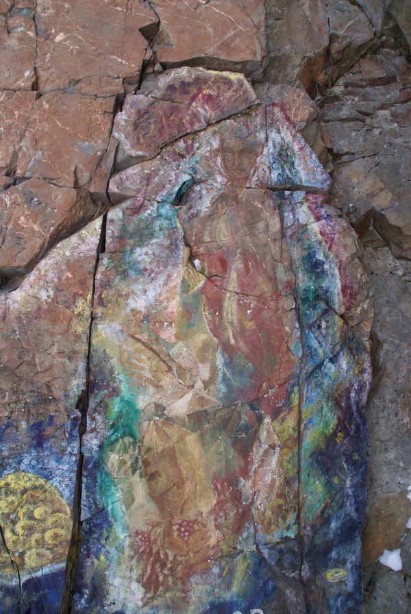 И как-то устроено, что светло в пещере. И лежит в той пещере умерший человек, а рядом девица неописанной красоты сидит и не утыхаючи плачет, а совсем не старится. Как был ей восемнадцатый годок в доходе, так и остался. Охотников в ту пещеру пробраться много было. Всяко старались. Штольни били — не вышло толку. Даже диомит, слышь-ко, не берет. Хотели обманом богатство добыть. Придут это к горе, да и кричат слова разные, как почуднее. Думают, не угадаю ли, дескать, дорогое имячко, которое само пещеру откроет.