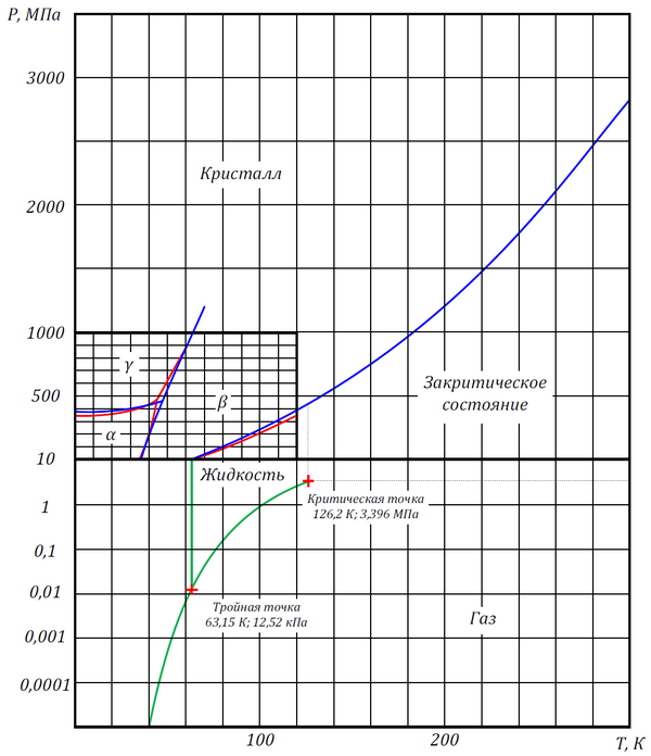 Фазовая диаграмма азота показана на рисунке.