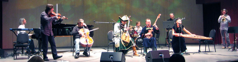 Алексей Айги (второй слева), Ансамбль 4’33” и группа «Намгар» исполняют музыку из телесериала «Сыщик Путилин» на фестивале «Роза Мира» в Московском Доме музыки, 13 ноября 2008.