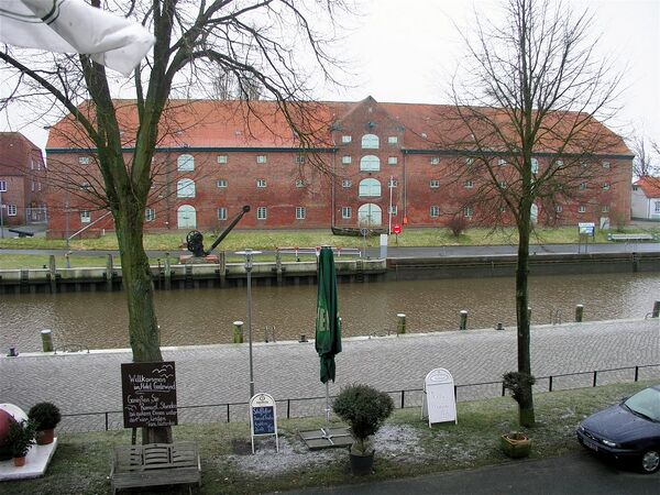 В 1783 году, как часть развития канала, вдоль водотока были построены три склада (в Германии так называемые «упаковочные дома»): один у шлюза в Киль-Хольтенау, один у шлюза в Рендсбург, и один в портовом районе Тённинга. Инфраструктура позволяла хранение и перевалку сыпучих грузов, проходящих через канал, например, шерсть, крупы, кофе и соль. Все три пакгауза сделаны из кирпича на деревянном каркасе, имеют три полноценных этажа и мансарду. Пакгаузы в Хольтенау и Тённинге сопоставимы по размеру (длина 77,5 м и ширина 12,6 м), с жилой площадью примерно 4000 квадратных метров; в Рендсбурге пакгауз существенно меньше двух других (29,5 м × 12,6 м).