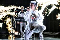 Би́лли А́йлиш Па́йрат Бэрд О’Ко́ннелл (англ. Billie Eilish Pirate Baird O'Connell; род. 18 декабря 2001[1][2][…], Лос-Анджелес, Калифорния) — американская певица и автор песен. Лауреат премии «Оскар» (2022) за песню «No Time to Die», написанную для фильма «Не время умирать» (2021). Снискала известность в 2015 году благодаря публикации дебютного сингла «Ocean Eyes» на SoundCloud. В 2019 году её дебютный альбом When We All Fall Asleep, Where Do We Go? возглавил американский (Billboard 200) и британский (UK Albums Chart) хит-парады, а сингл «Bad Guy» вышел на первое место в Billboard Hot 100 (США). Он стал первым чарттоппером певицы, а сама Айлиш благодаря этому достижению стала первым человеком, рождённым в XXI веке, которому удалось возглавить Hot 100[3].