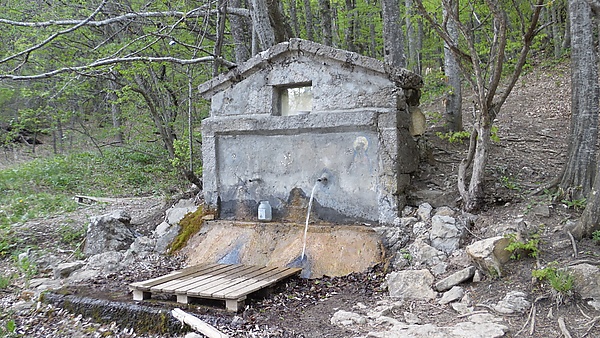 …выход воды: известняк, наносы, валуны, лес; качество воды: хорошее, выход оборудован в фонтан…[8].