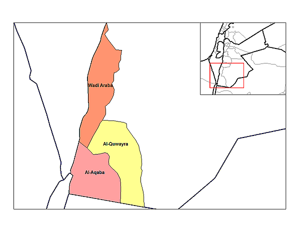 На севере граничит с мухафазой Эт-Тафила, на востоке с мухафазой Маан, на юге с Саудовской Аравией, на западе с Израилем. На юго-западе выходит к побережью залива Акаба Красного моря.