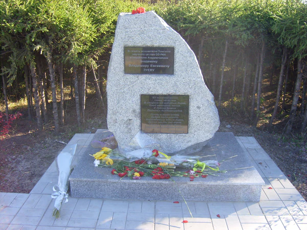 Большой вклад в создание и развитие Академгородка внёс томский учёный, академик В. Е. Зуев, на плечи которого легла реализация проекта создания Томского филиала Сибирского отделения Академии наук СССР, позже преобразованного в Томский научный центр СО РАН, первым руководителям которого и стал В. Е. Зуев. Сейчас площадь на въезде в Академгородок носит его имя.