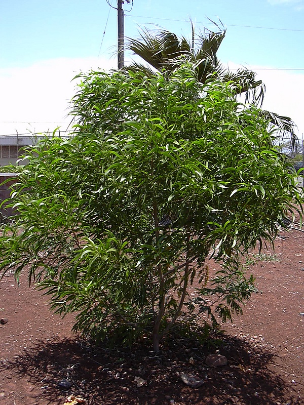 Близкий родственник более крупной гавайской акации — Акация коа, которая обитает в более влажных районах.