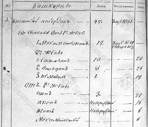 Ошибочно считалось, что у Ишимбая Акбердина было 7 сыновей и 2 дочери. Ошибка впервые встречается в работе А. З. Асфандиярова «История башкирских сел и деревень»[3]. Но взглянув на ревизские сказки 1816[1] и 1834[5] года деревни Ишимбаево всё становится предельно ясно.
