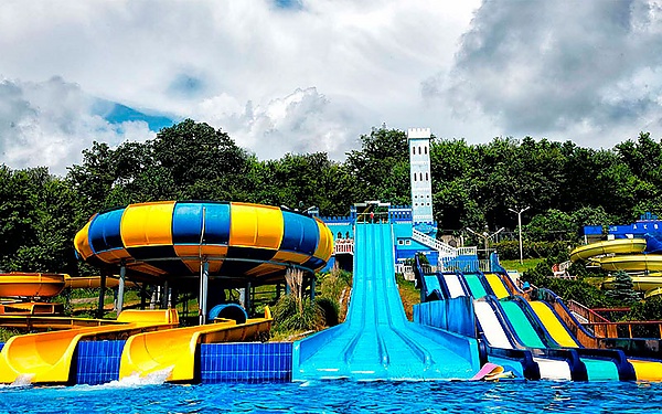 Посетителям доступны водные аттракционы, длина которых варьируется от 24 до 156 метров. Инфраструктура аквапарка включает бассейн с генерацией искусственных волн, специализированные водные спуски для детей, интерактивные фонтанные инсталляции, а также стилизованные тематические игровые комплексы, прыжковые платформы (батуты). Зоны отдыха оборудованы шезлонгами и солнцезащитными навесами. Во внутренней секции комплекса представлены водные горки длиной от 50 до 91 метра. Для молодой аудитории предусмотрен специализированный бассейн с горками и каскадными элементами и водопадами. Комплекс гидротермальных процедур включает финскую сауну, традиционную русскую баню, контрастную купель и гидромассажный бассейн (джакузи)[4],[5].