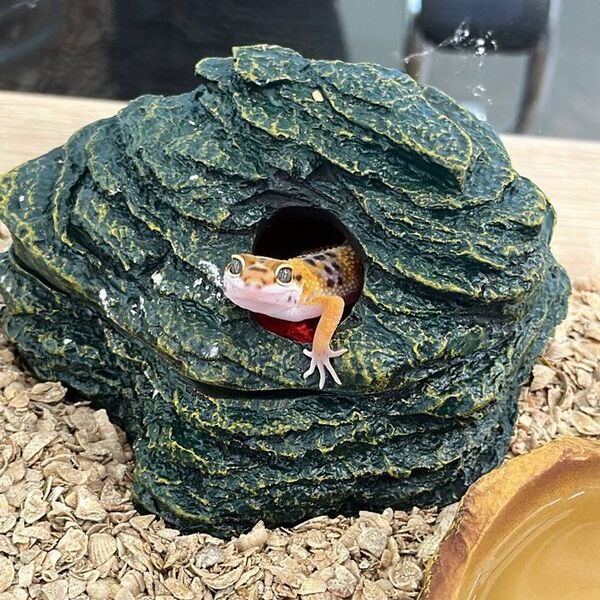 - Пятнистый леопардовый эублефар — вид гекконообразных, взрослая особь достигает 25-30 см. Эублефар идёт на контакт с человеком, способен узнавать хозяина. Для содержания используется террариум с крышкой, площадью не менее 45х45х30 см, в террариуме оборудуют укрытие и оснащают его термоковриком для поддержания комфортной температуры. Для рептилии также необходима влажная камера, с помощью которой эублефар легче переносит линьку — это может быть пластиковый контейнер с крышкой и с дырочкой сбоку — для входа рептилии . Питается белковой пищей, это могут быть замороженные насекомые[10].