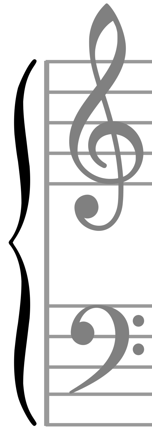 Используется в записях фортепианных и органных произведений, оркестровых и хоровых партитурах. В фортепианной партитуре верхняя строка исполняется правой рукой, нижняя — левой.