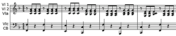 - необязательный аккомпанемент (ad libitum) (может быть опущен без ущерба произведению в целом).