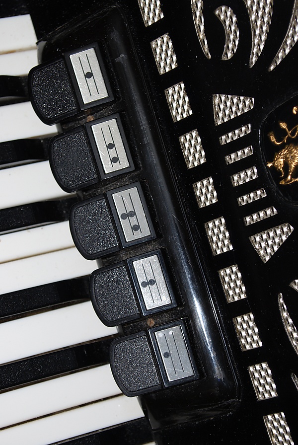 В остальном же конструктивно кнопочный аккордеон никак не отличается от клавишного. В частности панель-основа правой клавиатуры у кнопочного и клавишного устроена одинаково и, в частности, развернута относительно корпуса инструмента под одинаковым углом.
