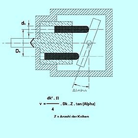 При вращении вала гидромашины (рис. 1) плунжер, находящийся внизу (в нижней мёртвой точке), перемещается наверх, и одновременно совершает движение вдоль оси насоса «от края» блока цилиндров — происходит всасывание. Одновременно с этим тот плунжер, который находился вверху, перемещается вниз, и совершает движение «к краю» блока цилиндров — происходит нагнетание. Плунжеры, осуществляющие в данный момент нагнетание, соединены вместе одной канавкой — и образуют полость высокого давления; а те плунжеры, которые осуществляют в данный момент всасывание, соединены вместе другой канавкой — и образуют полость низкого давления. Полости высокого и низкого давления отделены друг от друга. Точка, в которой плунжер переходит от полости высокого давления к полости низкого давления, называется верхней мёртвой точкой, а там, где происходит обратный переход, расположена нижняя мёртвая точка. В момент перехода плунжера через одну из мёртвых точек образуются запертые объёмы.
