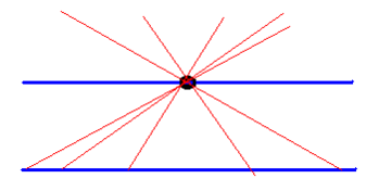 - При продолжении двух прямых от точки их пересечения расстояние между ними неограниченно возрастает[13].