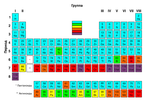| Период открытия | XVIII век (уран) — XX век (лоуренсий) |