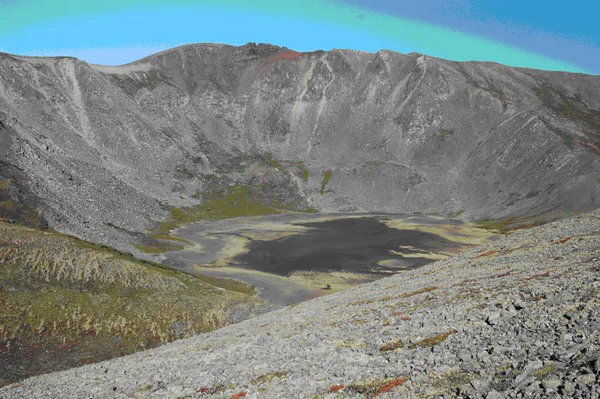 На уплощенной вершине купола редкие ледниковые валуны гранитов без следов термического воздействия. По форме похож на остро вершинные вулканы острова Исландия, образовавшиеся под ледниковым щитом. Сыпучая гряда перемешанного моренного (песок, гравий, галька и валуны) и пирокластического (шлаки, туфы, бомбы, лепешки лав терракотового цвета) материала в виде полукольца высотой до 80 м аккумулировалась по южному контуру «каравая» в пространстве между льдом и куполом. Лавовый поток плитчатых базальтов, излившихся на запад в вершину долины реки Сыни, с поверхности несет следы ледникового воздействия и местами слегка присыпан валунами ледникового гранита. Ближе к куполу на поверхности залегают конгломераты — спекшаяся смесь терригенных и вулканогенных пород с сильно обоженными гранитными валунами. В днище вершинного ледникового кара располагается озеро Аку. Ф.М. Ступак считает ледниковый кар воронкой взрыва (эксплозивный кратер Аку). В последнюю фазу пароксизма вулкана под северо-восточным основанием купола, на юго-восточной окраине озера сформировалась гряда пемзовидных шлаков и игнимбритов высотой до 10—15 метров. Исключительная сохранность вулканических построек гряды указывает, что она образовалась в постледниковье (в голоцене).