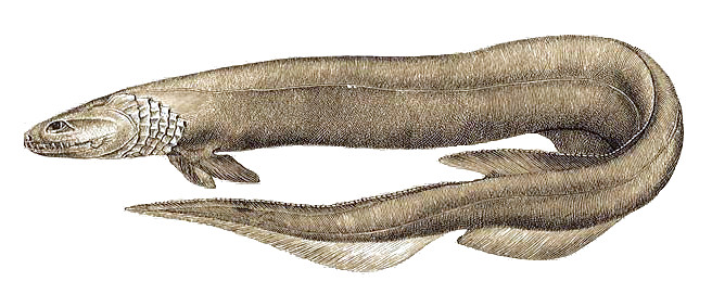 Многожаберникообразные. Древний отряд: первые находки датируются пермским периодом[48], по другим данным — началом юрского[47]. Состоит из двух семейств, отличающихся формой тела — угреобразной у плащеносных акул и «традиционной» торпедообразной у многожаберниковых. Для обоих семейств характерны шесть или семь жаберных щелей, один спинной плавник и наличие анального плавника. Преимущественно распространены в прохладной глубине тропиков, яйцеживородящие.