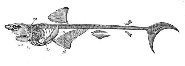 Скелет акулы заметно отличается от скелета костных рыб — в нём нет костей, и он полностью образован из хрящевых тканей. Согласно недавним открытиям кости были утеряны в процессе эволюции[8]. В скелете выделяют следующие отделы: