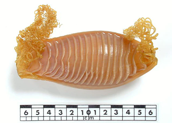 На коже, покрывающей подвижные хрящевые челюсти, в несколько рядов располагаются зубы, которые являются преобразованными плакоидными чешуями.
