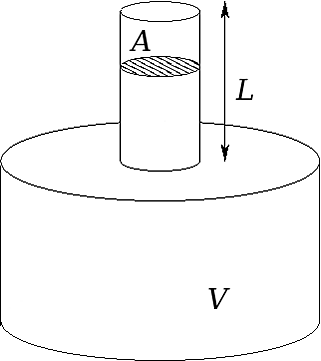где — длина горлышка, — объём воздуха в горлышке. Совершив подстановку, получим: