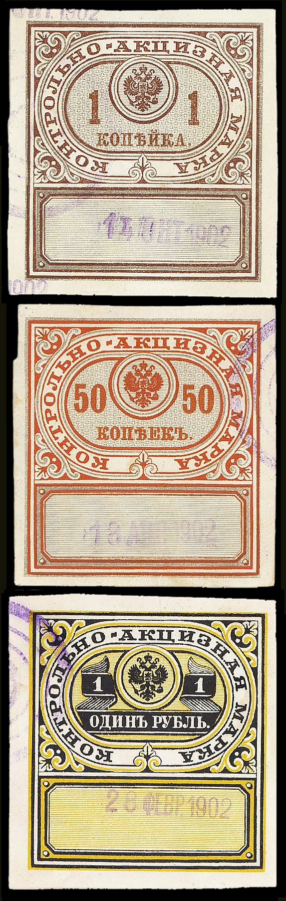 При этом бандероли обязательно выбирались водочными, табачными и спичечными фабрикантами на определённую в законе сумму, причём допускалась рассрочка платежа и отпуск бандеролей в кредит, ограниченные указанными в законе условиями[3]. По требованию акцизных управлений, в случае надобности, бандероли могли быть отпускаемы присутственным местам, учреждениям и должностным лицам как цельными листами, так и отдельными полосками в потребном каждый раз количестве.