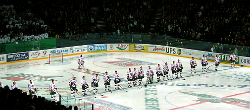 - Разгром (7:1), который учинили хоккеисты «Ак Барса» у себя на площадке 25 апреля 2010 г. в шестом матче финальной серии своим соперникам из «ХК МВД», стал самым крупным в истории финальных серий чемпионатов России[11]. В перерыве этого матча выступала группа The Shopengauers, участники которой впоследствии напишут гимн хоккейного клуба «Ак Барс»[12]. Защитник «Ак Барса» Алексей Емелин в этом матче установил сразу два рекорда: он забил 1 гол и сделал 4 голевые передачи, набрав в итоге в одном матче финальной серии сразу 5 очков[11].