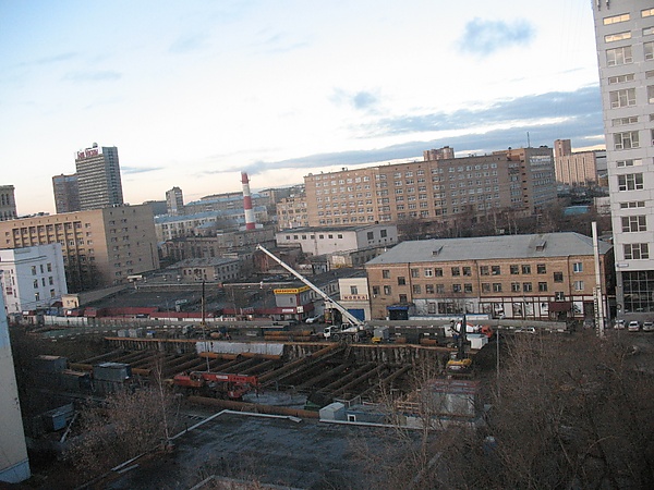 - Вид с пешеходного мостика на Красном Балтийце: строительство там, где раньше были железнодорожные пути. 06/01/11 (недоступная ссылка)