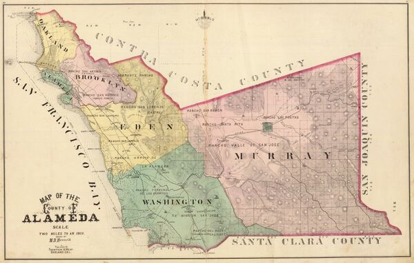 Округ Аламида был образован 25 марта 1853 года из частей других округов — Контра-Коста и Санта-Клара. Испанское слово «аламеда» означает «место, где растут тополя».