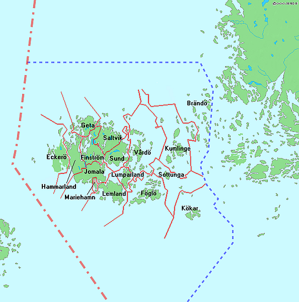 Состоит из 3 регионов: Мариехамн, архипелаг, деревня.