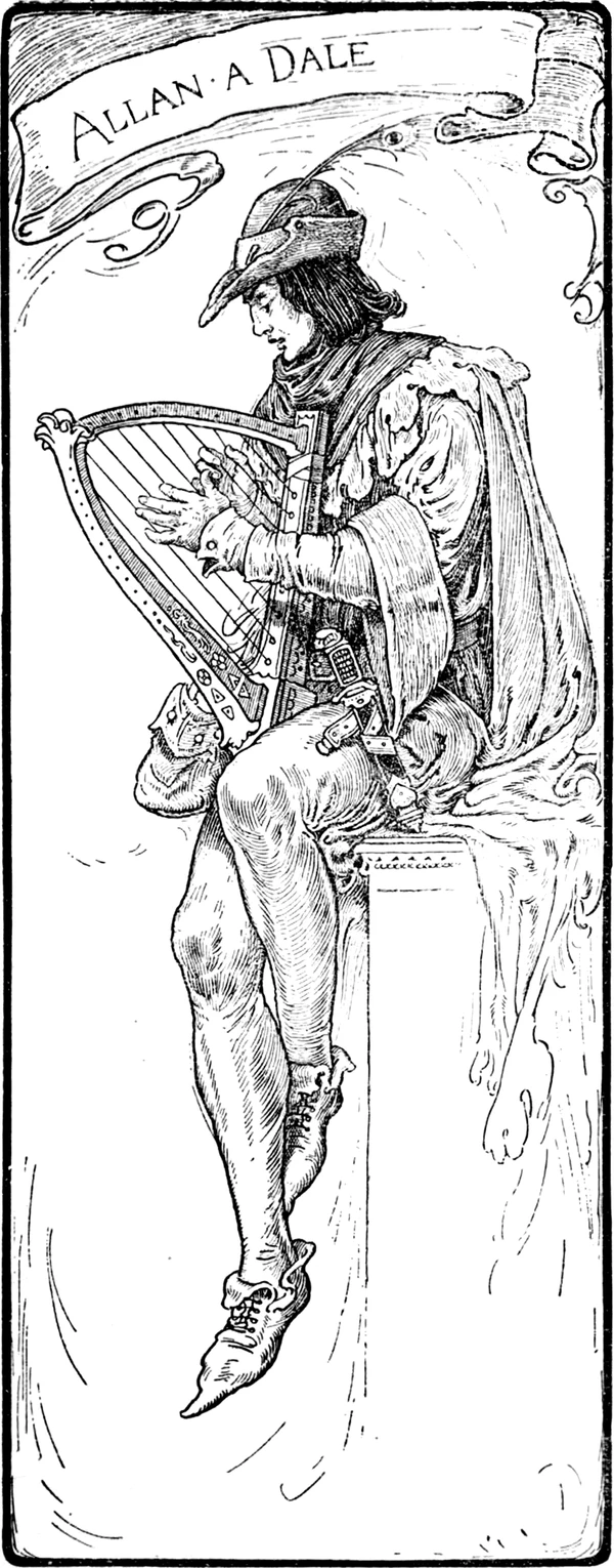 - В романе Вальтера Скотта «Айвенго» в русском переводе менестреля зовут Аллен из Лощины. Брат Тук и Робин Гуд отзываются о нём не в лучших тонах, поскольку Аллен любит выпить эля и очень часто буянит. Так, Робин узнаёт, что Аллен ограбил аббата Жорво, потребовал с того большой выкуп и угрожал повесить пленника в случае неповиновения. Впрочем, Робин и брат Тук в защиту Аллена говорят, что тот верен всегда своему слову и никогда не отступает перед своей целью. Внешность Аллена описывается в конце романа: он предстаёт как «молодцеватый юноша в зелёном кафтане с золотым шитьём» и является менестрелем отнюдь «не простого звания».
