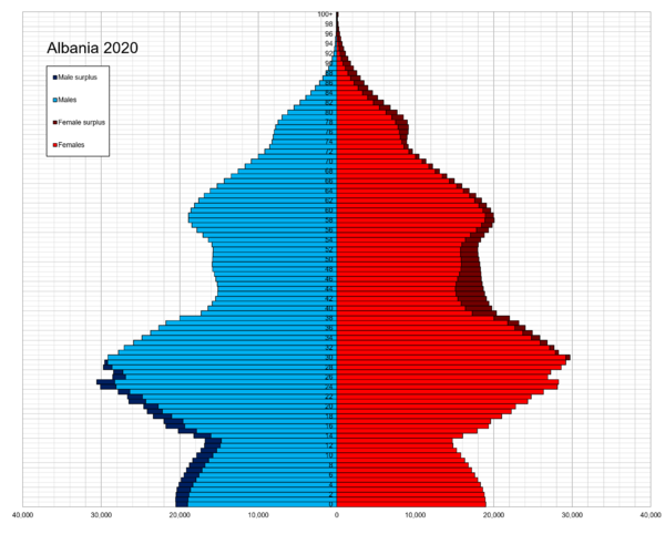 Алба́ния (алб. Shqipëria), полная официальная форма — Респу́блика Алба́ния[5] (алб. Republika e Shqipërisë [ɾɛpuˈblika ɛ ʃcipəˈɾiːs]), — государство в западной части Балканского полуострова. Население, по данным Института статистики Албании на 1 января 2022 года, составляет 2 793 592 человека[2], территория — 28 748 км². Занимает 139-е место в мире по численности населения и 139-е по территории. Основная религия — ислам, около 64 % населения — мусульмане-сунниты.