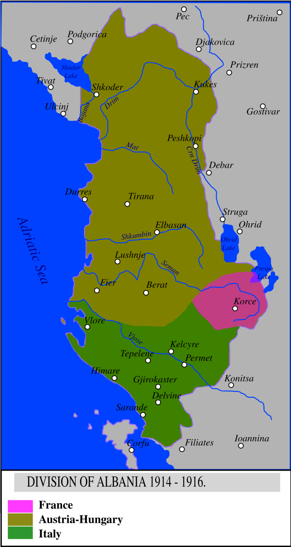 Австро-венгерские войска оккупировали почти всю Центральную Албанию. Южнее вступили в Албанию болгары, Южную Албанию продолжала оккупировать нейтральная Греция, итальянцы укрепились во Влёре. Когда в результате внутриполитической борьбы в Греции создалась угроза её выступления на стороне Центральных держав, то итальянские и французские войска вытеснили греков из большей части Южной Албании. Чтобы обеспечить тылы своих армий, занятых на более важных фронтах, оккупационные власти обеих коалиций старались потакать национальным чувствам албанцев. 10 декабря 1916 года под контролем французских властей в Южной Албании была создана Автономная албанская республика Корча.