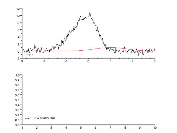 В этом примере используется алгоритм Гаусса — Ньютона для построения модели данных путём минимизации суммы квадратов отклонений данных и модели.