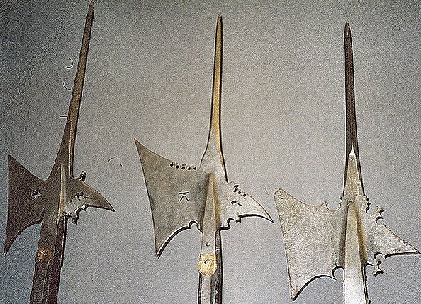 - Выпуклое — стандартный вид алебарды, позаимствованный собственно от топора. Был характерен для раннего средневековья.