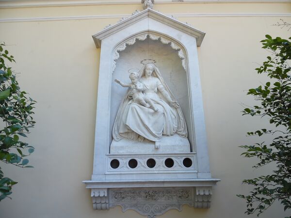 В 1842—1843 гг. по проекту архитектора А. И. Штакеншнейдера к Коттеджу пристраивается Столовая с Мраморной террасой. Во внешней нише стены северного фасада здания архитектор поместил скульптурную группу «Мадонна с младенцем».