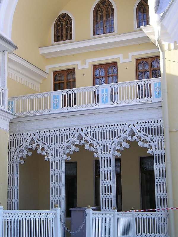 Ажурная лепка потолков в виде готических решёток, арок, кронштейнов сочетается с орнаментальной живописью, дополняющей оформление интерьеров. Важным элементом архитектурно-художественного декора помещений является виртуозная резьба оконных и дверных откосов, строгий геометрический рисунок паркета. Готический орнамент повторяется и в коврах ручной работы, декоре печей, мраморных каминов, мебели. Часы, канделябры, люстры выполнены также в готическом стиле. Значительную роль в оформлении интерьеров играет живопись, украшающая стены и потолки многих помещений. О победах в русско-турецкой войне 1828—1829 гг. напоминает вмонтированный в стену вестибюля камень, взятый русскими войсками при штурме крепости Варна.